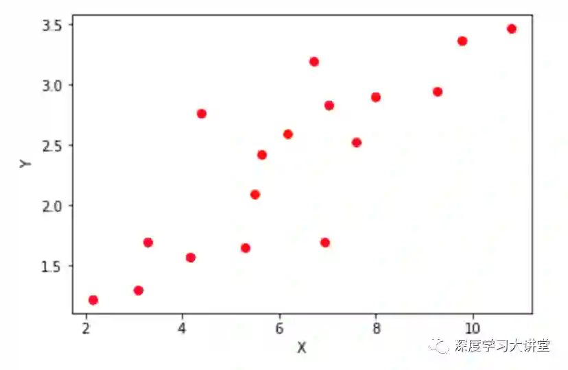 比如我们想从下图所示的数据(X,Y)中学习一个线性关系y=w*x+b