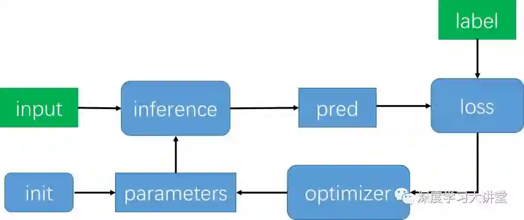 对于这样一个机器学习任务,一般分为测试过程和训练过程,测试过程一般比较简单,这里我们介绍如何使用TensorFlow来实现训练过程,对于机器学习模型的训练过程的一般可以如下面流程图所示: