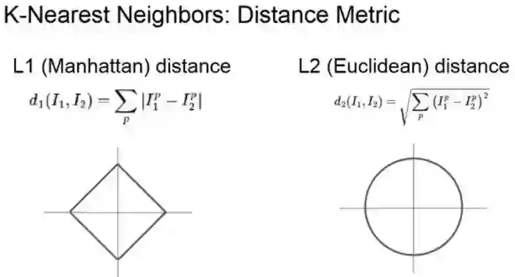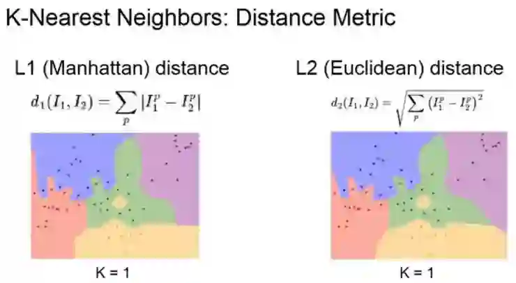 在左边可以看到一组 L1 距离,右侧是使用 L2 距离。