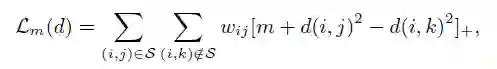 其原理与Weinberger的Metic learning经典文章(large margin nearest neighbor)LMNN[1]的方式非常相似,但本文提到的loss function与LMNN有三点不同:
