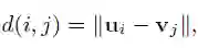 本文使用ui与vi分别作为用户与物品的特征描述。定义用户ui与vi之前距离,使用的是欧式距离: