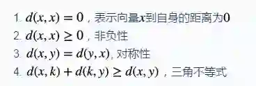一般需要根据处理的问题选择合适的相似性度量函数d(x,y),其满足的条件为: