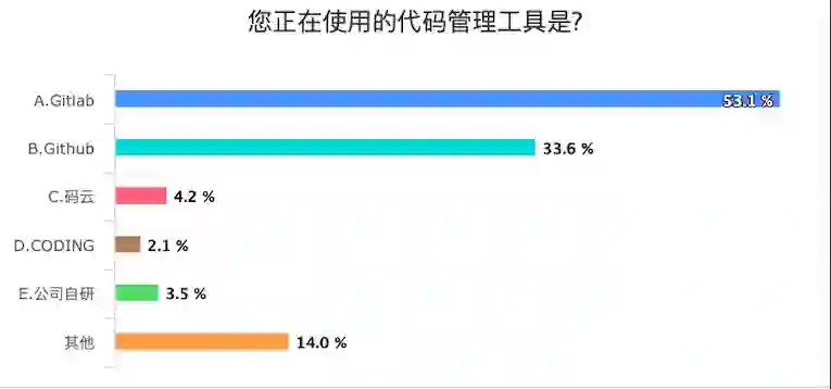 5、无论是否远程办公,代码管理工具对于提高效率而言都必不可少。调查显示,大家对 GitLab 情有独钟,相比 Github,GitLab 让团队对它们的 Repositories 拥有更多的控制。除此以外,还有很多值得关注的工具,包括码云、CODING,以及“其他”选项中被提到的:Phabricator、阿里云 Code、Bitbucket、Stash、Gerrit 等。