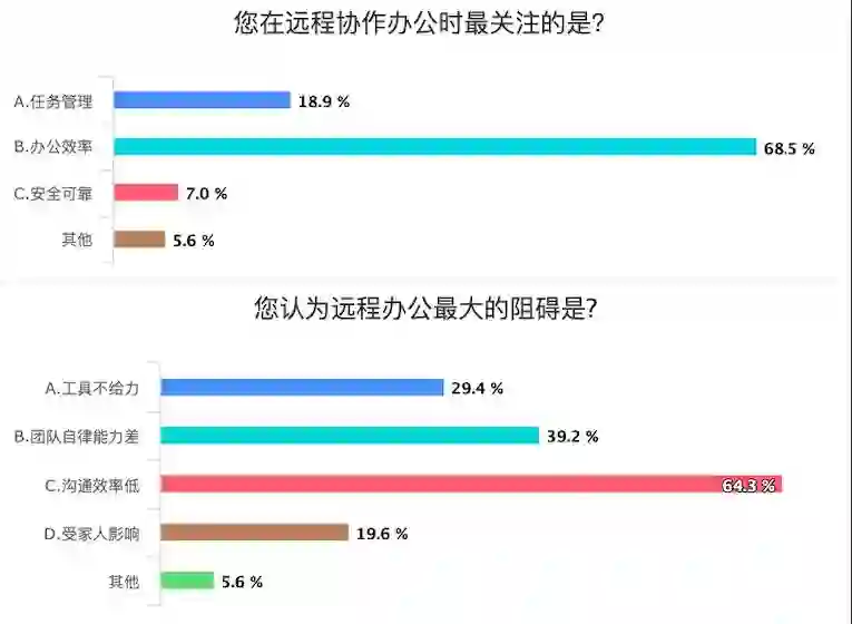 68% 的研发团队管理者最关注的是远程办公效率,其次是任务管理、安全可靠等;