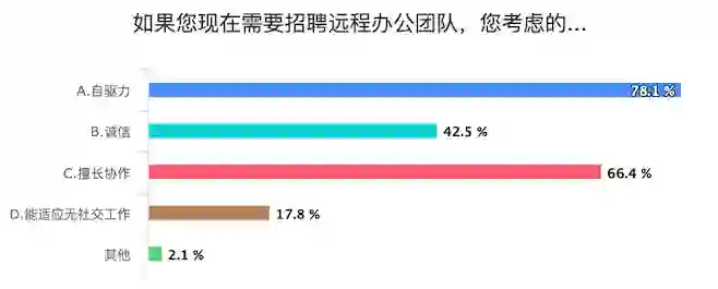 在远程团队人员招聘方面,主要考核自驱力,推荐建立小组责任制