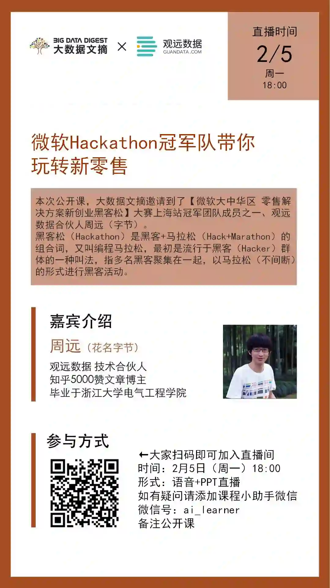 今晚大数据文摘邀请到了【微软大中华区 零售解决方案新创业黑客松】大赛上海站冠军团队成员之一、观远数据合伙人周远(字节)。他将从赛题背景、数据探索、特征工程、模型调优等方面,为大家带来观远团队在刚结束的黑客松大赛上的第一手经验: