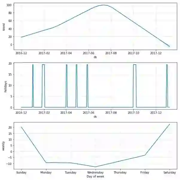 接下来就是模型的选择和调试了。我们的基线是历史平均(平均绝对百分误差MAPE: 0.744),对比了时间序列模型、树模型、深度学习相关模型之后我们发现,在没有GPU的条件下,基于Keras + TensorFlow的神经网络表现一般(MAPE: 0.654),不如XGBoost(MAPE: 0.251)、LightGBM(MAPE: 0.256)。