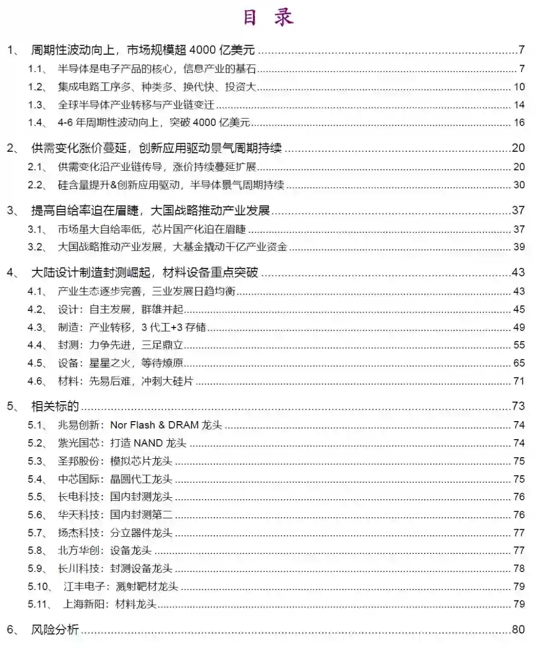 半导体行业景气度下降,下游创新应用发展不及预期,国家政策支持减弱,技术替代风险。