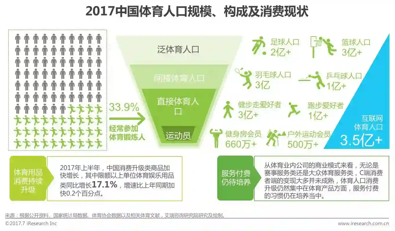 体育人口基数庞大,消费持续升级,但服务付费仍待培养