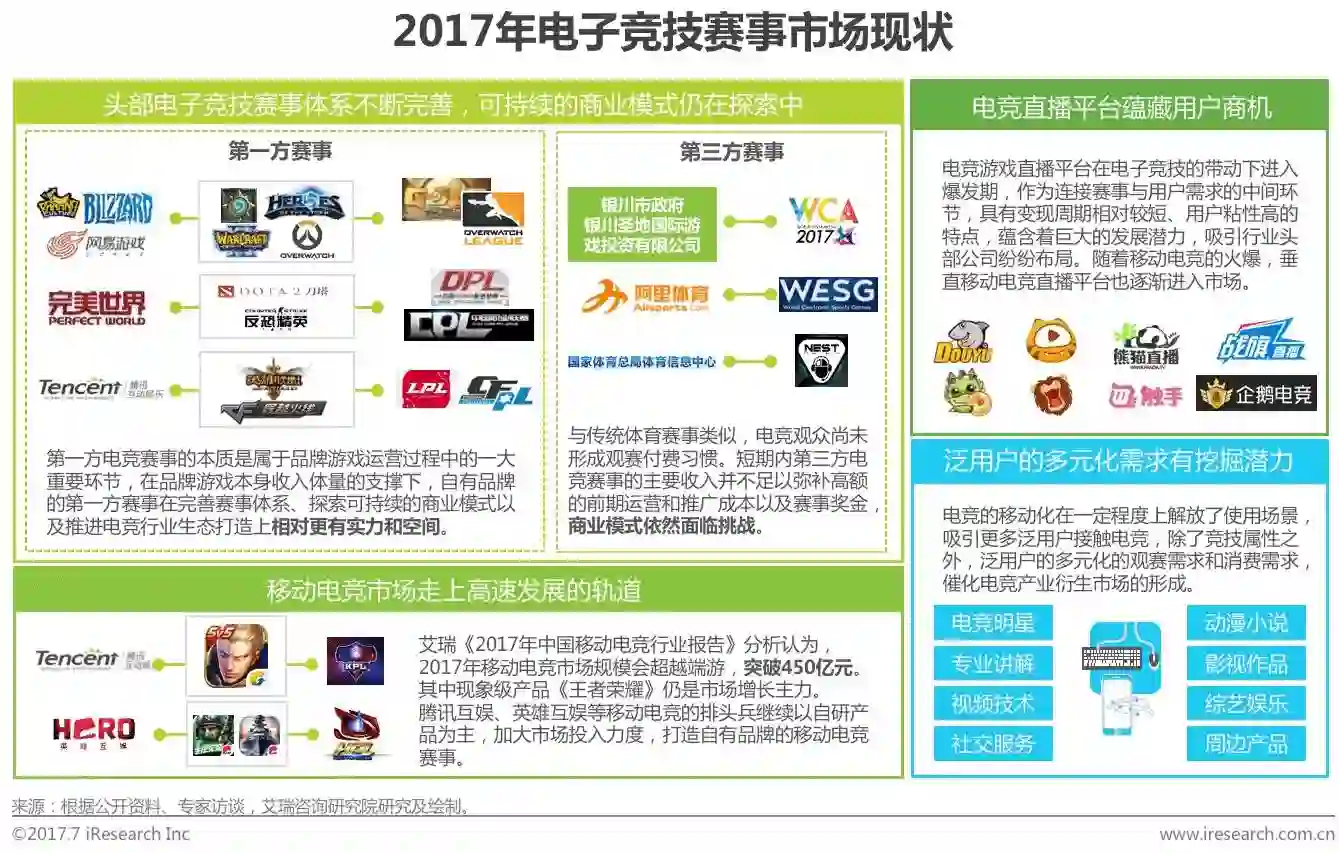 电子竞技赛事处于上升通道,移动电竞高速发展,直播平台蕴藏用户商机,泛用户的多元化需求催化衍生市场的形成