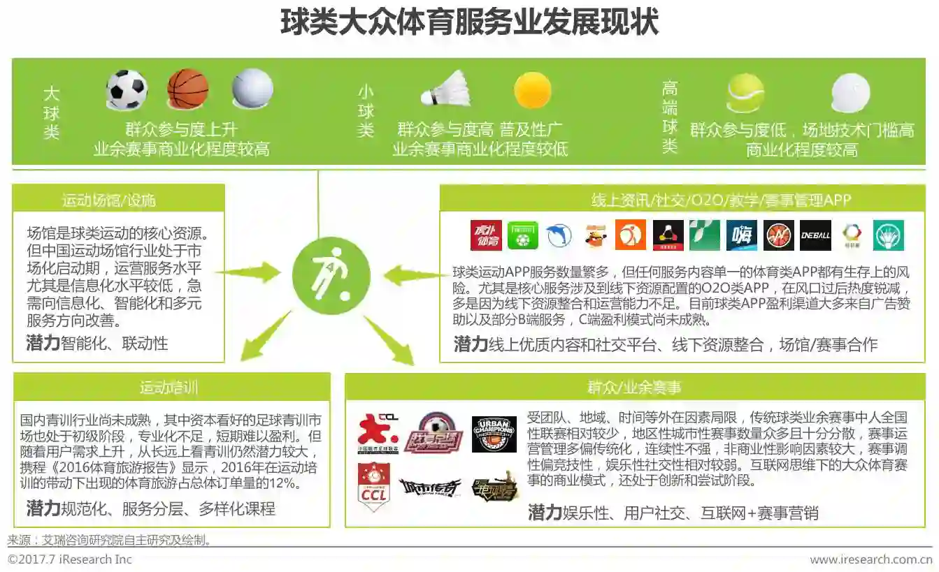 球类运动群众基础好品类多,足球、篮球商业化程度较高但赛事服务方式多偏传统,整合各环节资源与服务创新是关键