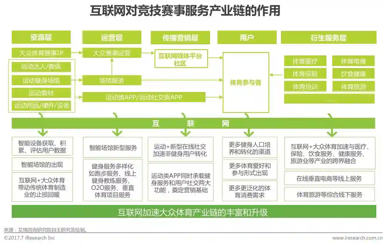 • 互联网加速大众体育服务业的产业链的丰富和升级;