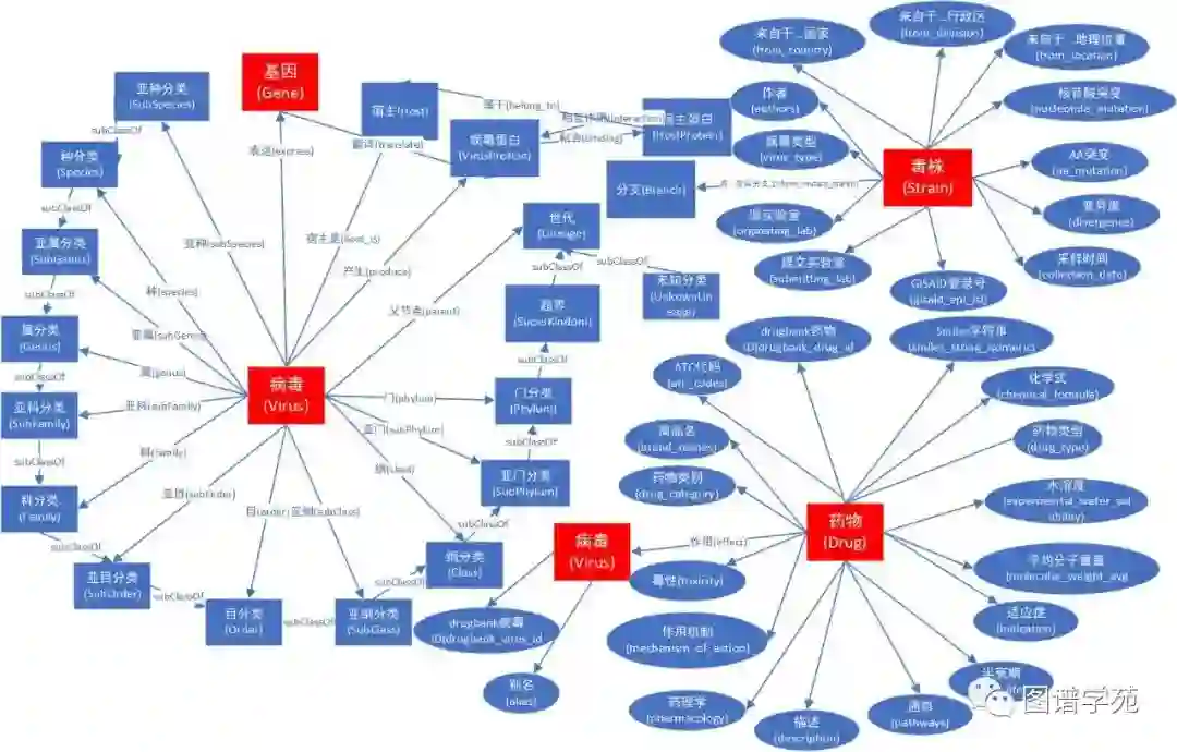 图谱以病毒,细菌为主体,扩展了治疗,疾病相关内容,通过了这些概念的百科知识,形成新冠百科知识图谱。