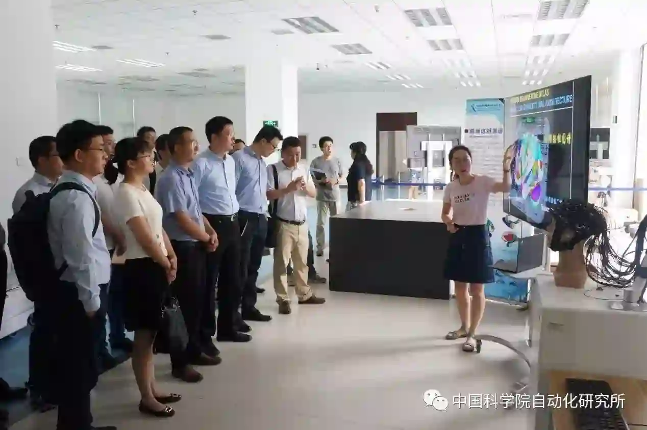 研讨会前,华为公司一行30余人在科技处杨鑫处长的陪同下,先后参观了自动化所类脑智能研究、脑网络组图谱与脑电同步检测仪、虹膜识别与智能视频监控、图像与视频分析等科研成果,并与科研人员进行了细致深入的交流。
