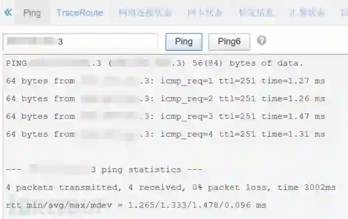 (1)部分安全设备,实际对IPv6的支持不足。如部分安全设备无法查询出IPv6攻击日志,甚至存在IPv6网络连通性的问题。如通过某台IPS设备,Ping外网网站的IPv4和IPv6地址测试,网络连通性存在差异。