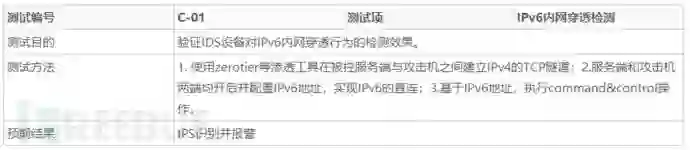 本次验证,假设攻击者已控制服务端主机,通过尝试建立IPv6隧道,测试对IDS设备的穿透效果。测试用例设计如下: