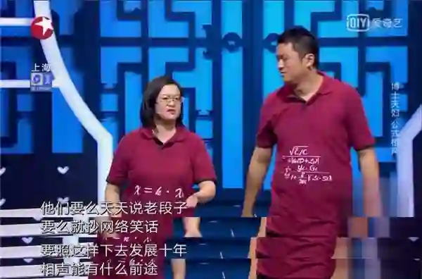 一对上海交大博士夫妻在参加相声节目时,以自创“公式相声”来"嘲讽"传统相声,他们的现场表现让很多人咋舌……