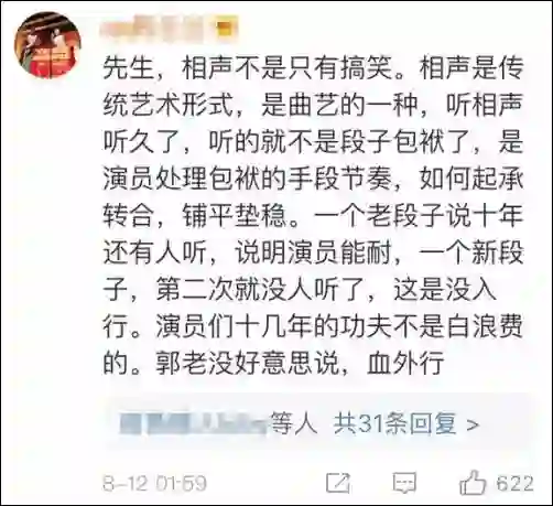 郭德纲接着说,相声跟其他艺术还是有区别的,讲究一个人一个样。