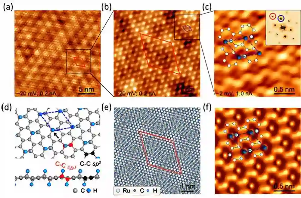 图2. 晶态三分之一氢化石墨烯高分辨STM图、结构模型及STM模拟。