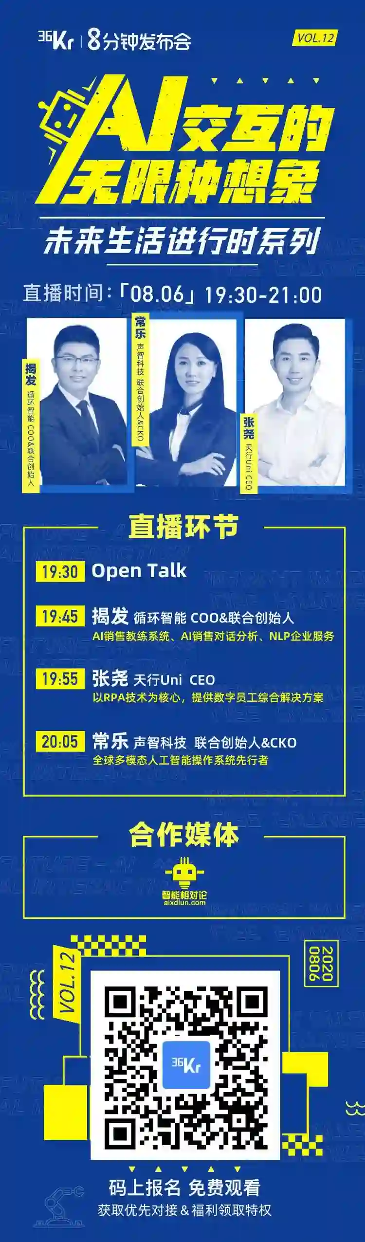 8月6日晚7点30分,36氪「8分钟发布会」邀请到循环智能、天行Uni、声智科技等企业