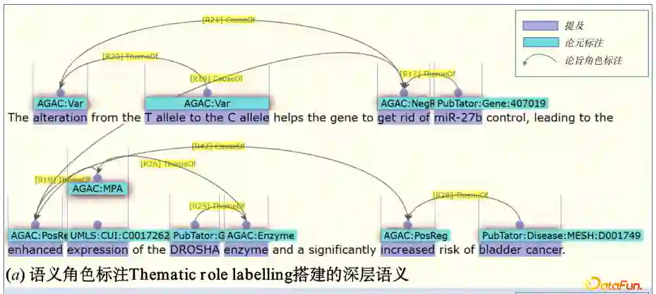 在收集医药文献原始数据后,语料库构建中最核心的工作,就是语料语义角色标注,语义角色标注也叫做语义分析,是用来识别句子中谓语的结构,比如“who did what to whom, where and when”,在给定谓语的情况下标记语义角色。也就是,希望说明“谁、对什么做了什么事情,产生了什么影响。”