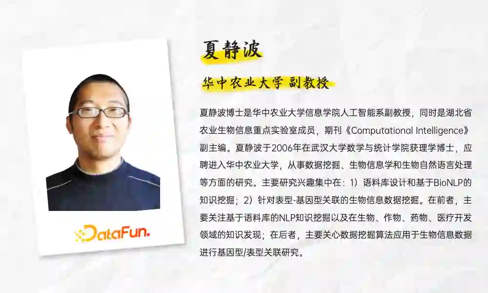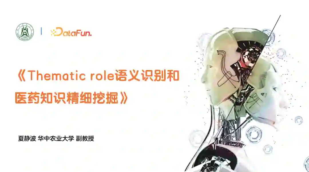 夏静波老师此次本次分享题目为“Thematic role语义识别和医药知识精细挖掘”。主要内容为: