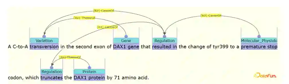 我们在数据集中,定义了这些实体类型:基因突变、分子活性、细胞活性,分子之间的通路。
