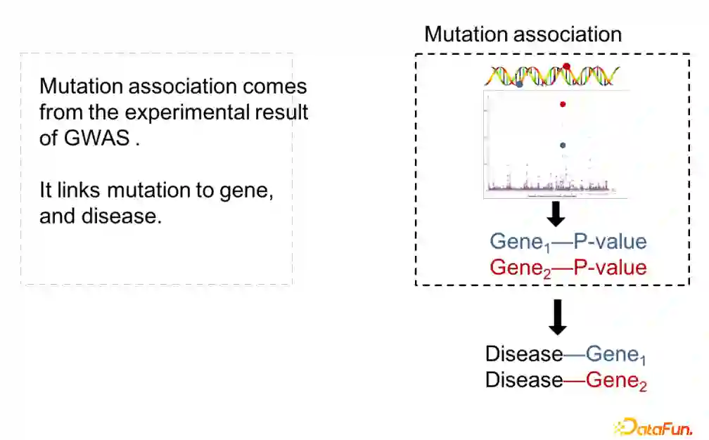 正如前面所述,我们这里有两套数据,一套是传统生命科学领域的关联数据P,它是0-1之间的数值,描述疾病和基因之间的关联关系度的值。另一套是生成语义关系的编码,描述基因和疾病之间的知识。