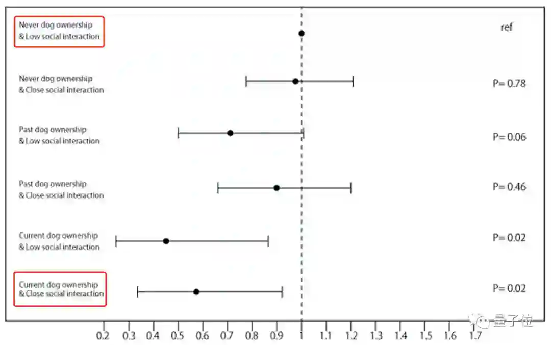 从下图中可以看到,与邻居社交的狗主人群体的优势比不低于0.54。