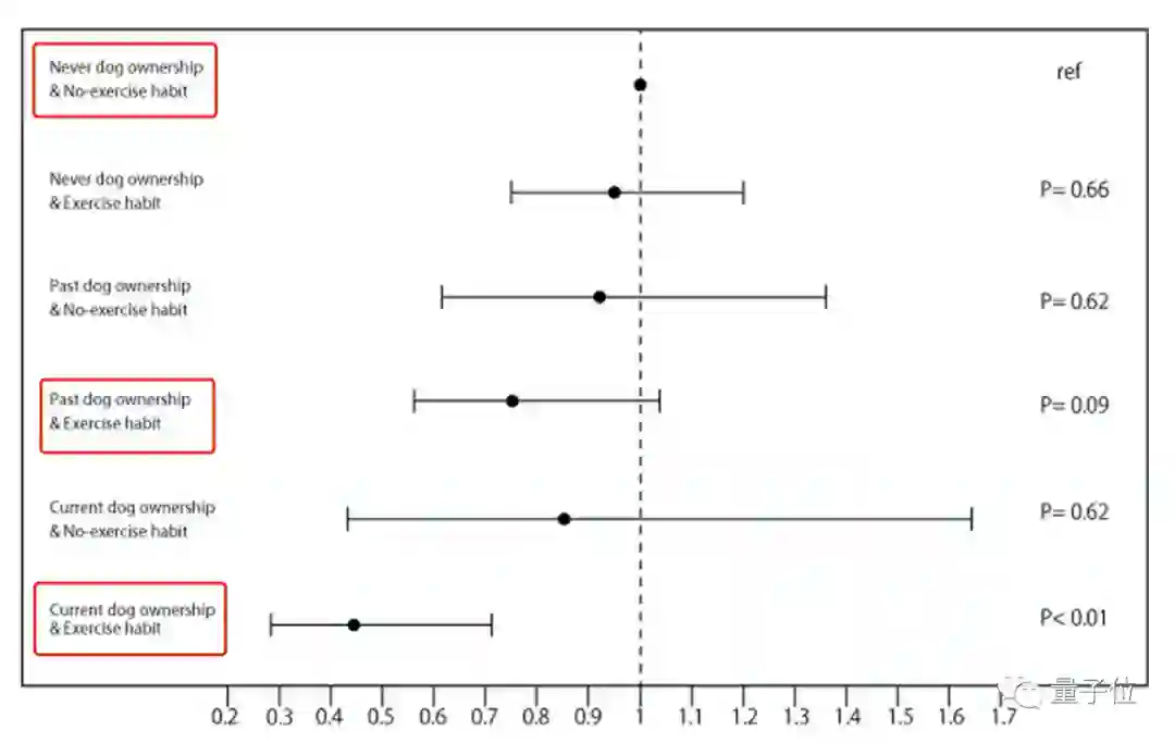 综合结果来看,在养狗基础上,锻炼这一额外因素对于降低老人残疾风险的影响很明显。
