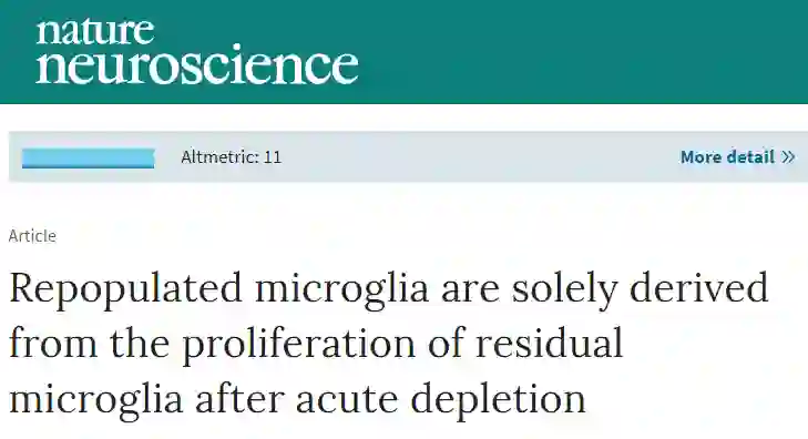 相关研究成果以“Repopulated microglia are solely derived from the proliferation of residual microglia after acute depletion”为题,发表在《自然-神经科学》上。