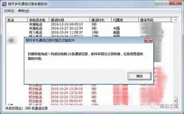 6,以前不小心删除的通话记录就被找回来了,注意,要把滚动条拖动到最底部,才可以看到标注为红色字体的恢复回来的通话记录。恢复回来的内容包括通话类型(来电或去电),开始通话的时间,通话持续的时长,对方号码归属地(具体到地级市),以及详细的对方座机或手机号码。