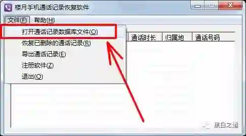4,最后下载并打开“楼月手机通话记录恢复软件”,使用该软件打开前面导出的CallHistory.storedata通话记录数据库文件。