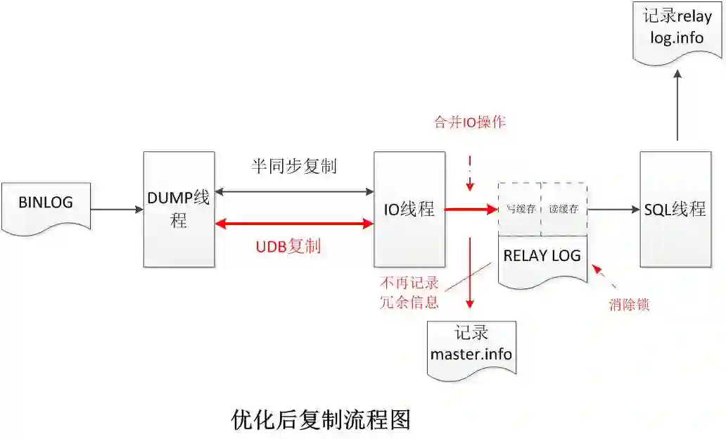 优化IO线程记录relay log的方式,将以event为单位记录,修改为以事务为单位进行记录。合并IO线程小的IO操作,提高IO性能。