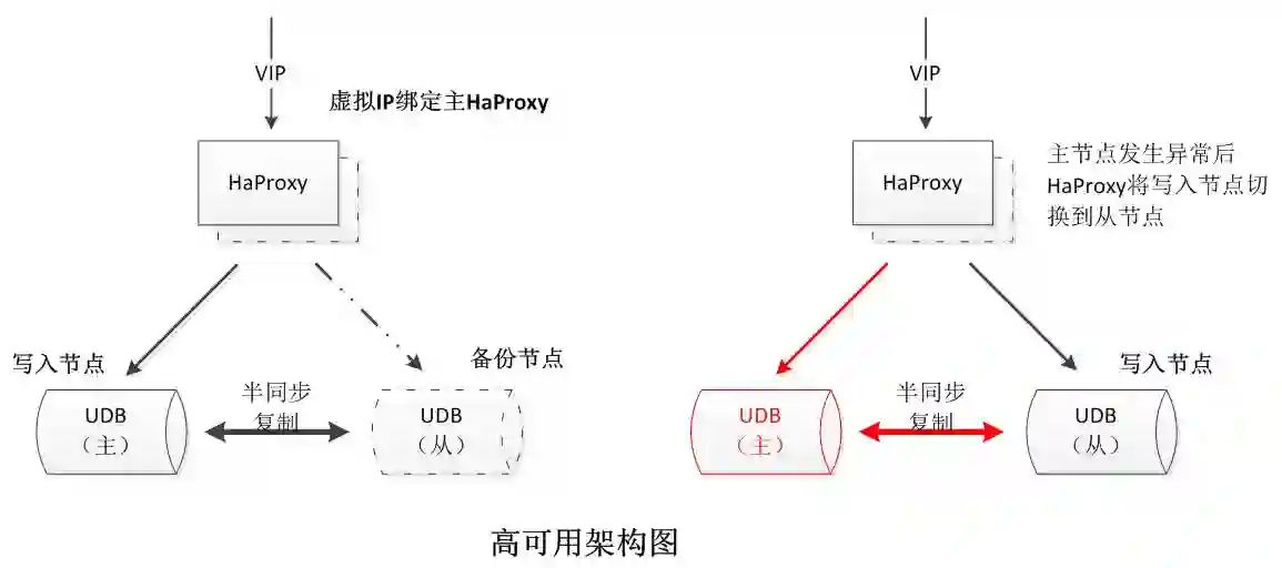 HAProxy在同一时间只连接一个UDB节点,避免多点写入带来的数据冲突问题;