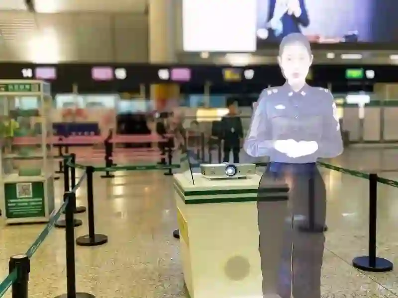 如今的科技日新月异,各个城市的机场都能够看到这种虚拟成像投影技术。