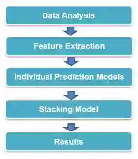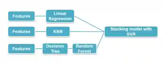 在第一阶段,我们利用了几个基本的回归模型进行训练,比如线性回归、KNN、决策树、随机森林等。在第一步训练完成的基础上,将这些模型进行融合,利用一个高层学习器,将单个模型的输出作为融合模型的输入再次训练融合模型,得到最终的结果。
