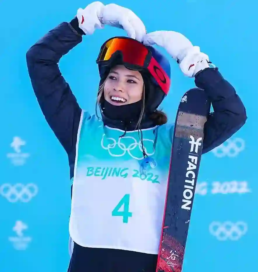 两个月前,在2021/22赛季国际雪联自由式滑雪大跳台世界杯美国斯廷博特站比赛中,她不仅获得冠军,还首次创造性地完成两周空翻转体1440度,成为世界上第一个完成这一动作的女子选手。