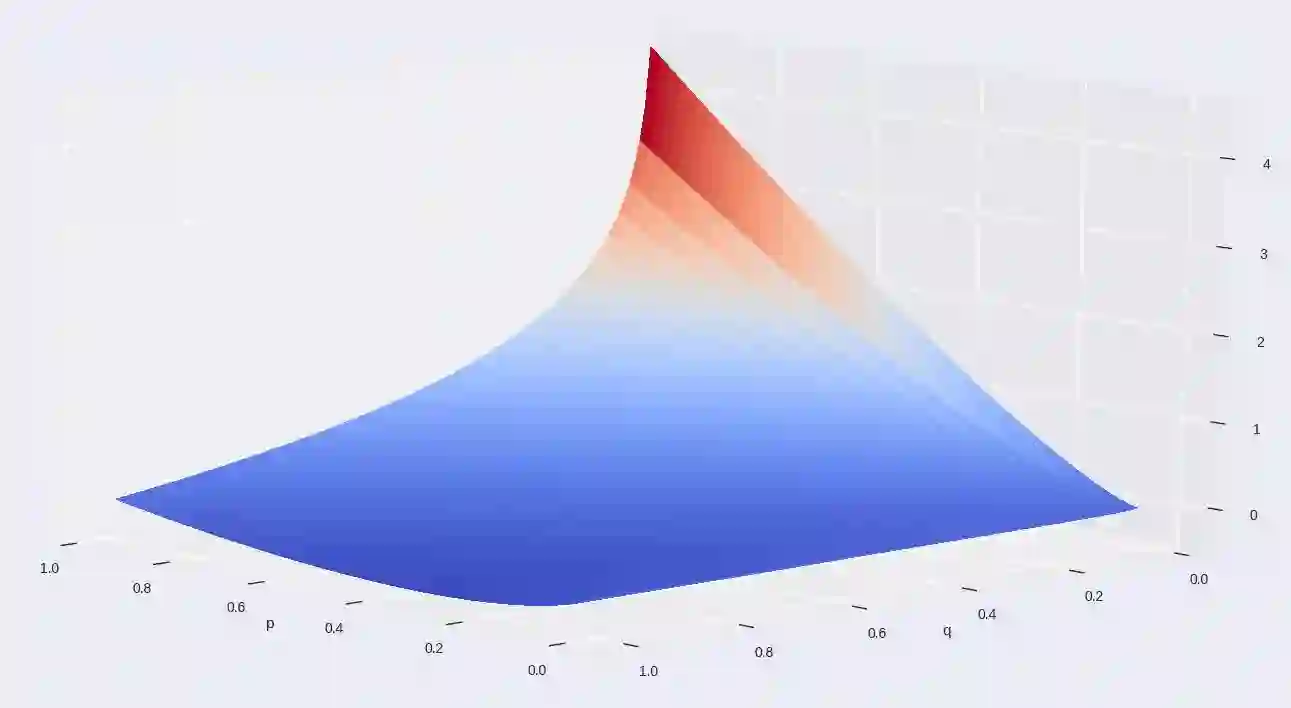 让我们看看这会对我们的成本函数(被称为 KL 散度(Kullback–Leibler divergence))带来怎样的影响。让我们绘图,然后看看没有求和部分的公式 (3)。