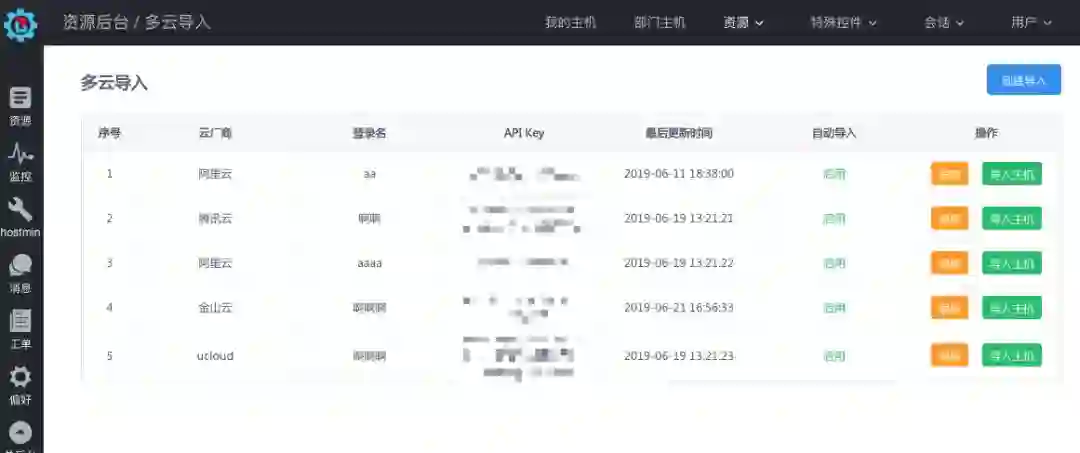 首先,资产管理的录入,完全有自动发现和多云导入完成,不需要手工录入任何资产。目前BigOps支持阿里云、腾讯云、金山云、Ucloud,未来会支持更多的云。