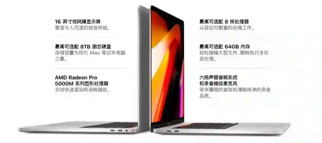 国行 16 英寸 MacBook Pro 还在等待审批,发售日未定。其中 2.6GHz 6 核处理器,512GB 存储,AMD Radeon Pro 5300M 标准机型售价 18,999 元,2.3GHz 8 核处理器,1TB 存储,AMD Radeon Pro 5500M 标准机型售价 22,199 元。