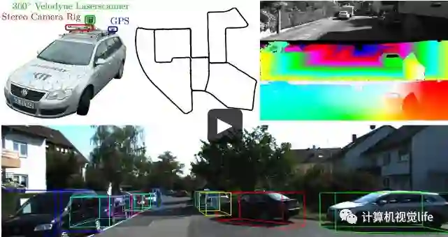 使用一辆改装的汽车采集,该车配备了两台高分辨率彩色和灰度摄像机,还有Velodyne激光扫描仪和GPS定位系统,用来提供精确的groundtruth。主要采集区域是卡尔斯鲁厄市区、农村地区和高速公路。提供测试脚本可以方便的实现量化评估。