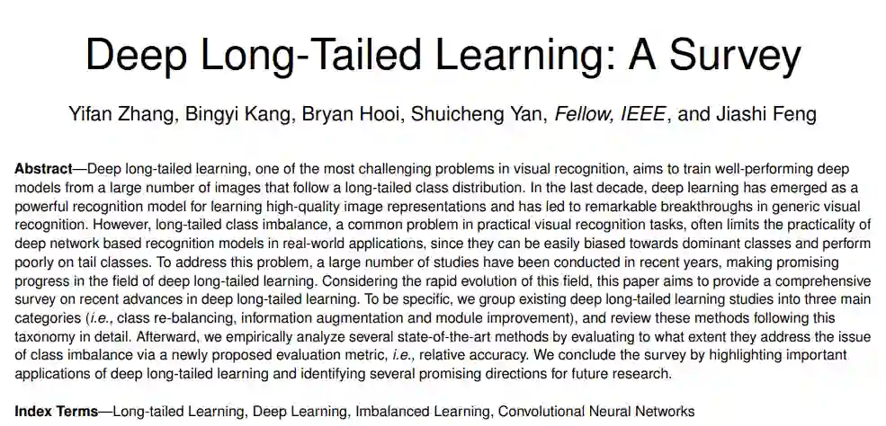 长尾学习是推动神经网络模型落地的重要范式。在这篇综述中,来自新加坡国立大学和 SEA AI Lab 的学者们首次系统地阐述了深度长尾学习及其方法和应用,并提出了一个新的评价指标以验证现存长尾学习方法对类别不平衡问题的解决能力。