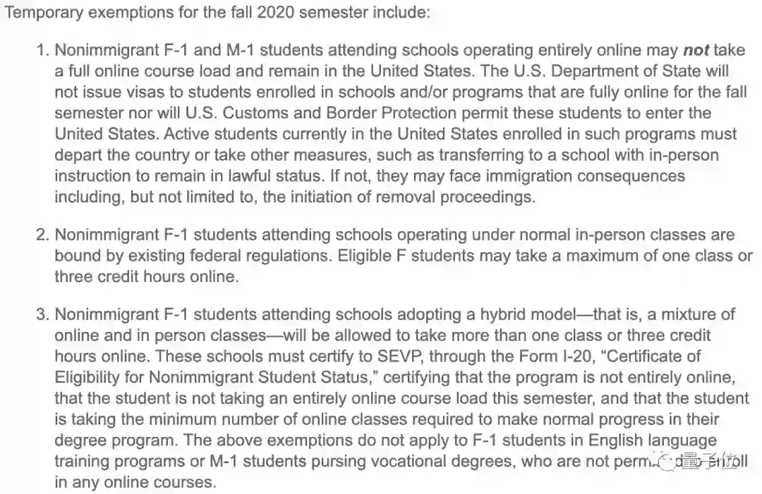 美国国务院不会向在秋季学期完全在线的学校和/或课程注册的学生发放签证,美国海关和边境保护局也不会允许这些学生进入美国。