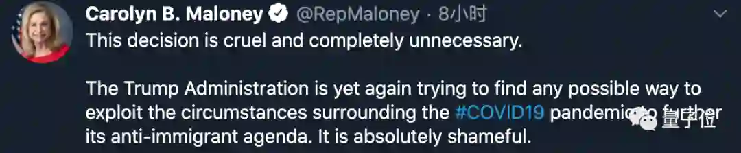 就连民主党众议员 Carolyn Maloney 也炮轰特朗普: