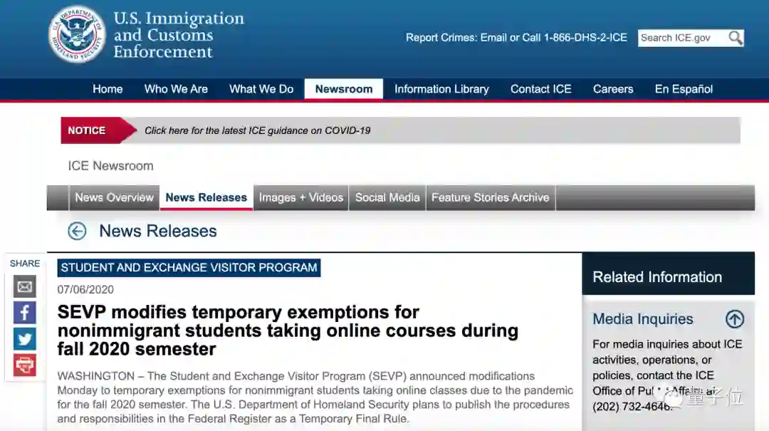 美国移民和海关执法局发布的公告如下,大家感受下: