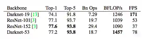 这个新网络比Darknet19强大得多,而且比ResNet-101或ResNet-152更高效。以下是在ImageNet上的结果: