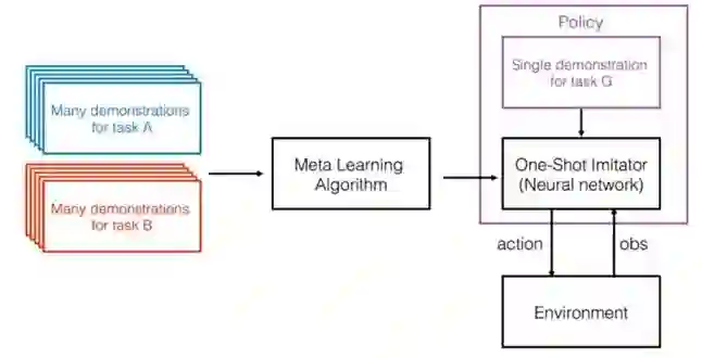 在 2017 年的 NIPS 大会中,Abbeel 和 OpenAI 和加州大学伯克利分校的研究人员通过元学习提出了 One-Shot Visual Imitation Learning viaMeta-Learning,该学习将元学习与一次性学习相结合,该系统只需要观察 1 个演示,然后就可以为新任务产生正确的动作。