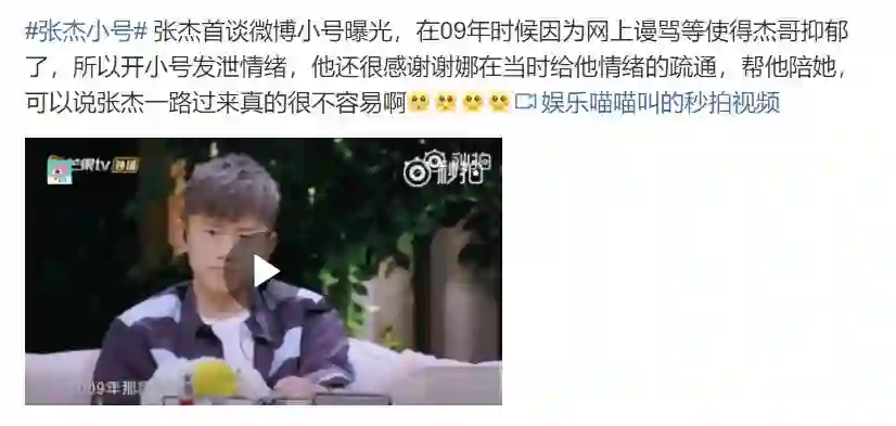 最近在某个节目中,张杰首谈微博小号,承认自己曾经开设过一个私人小号,用来宣泄自己无处安放的负能量。