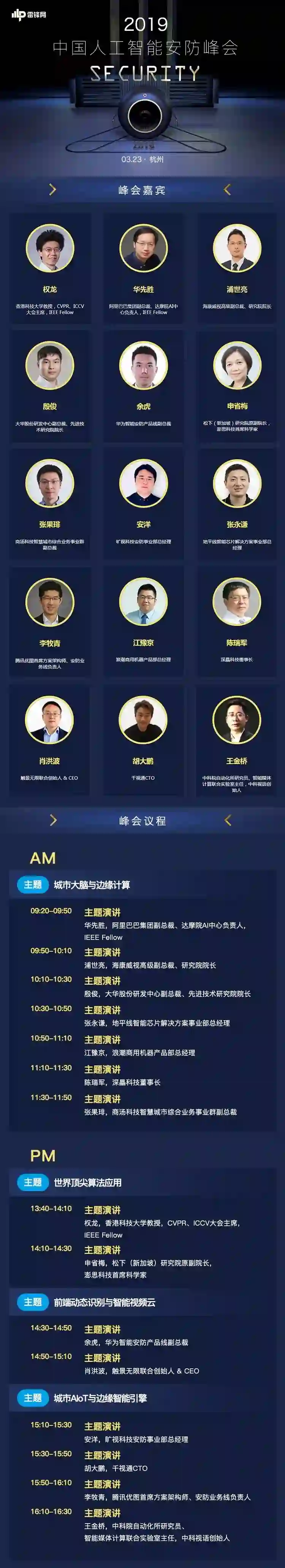 上午场:阿里巴巴华先胜、海康威视浦世亮、大华股份殷俊、地平线张永谦、深瞐科技陈瑞军、商汤科技张果琲、浪潮商用机器张琪。